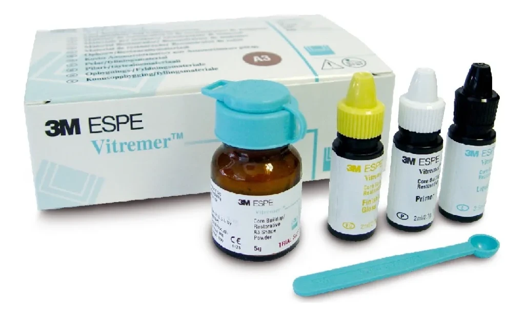 Vitremer™ es un material para reconstrucción de muñones y restauraciones de ionómero de vidrio con tecnología patentada de triple polimerización.
