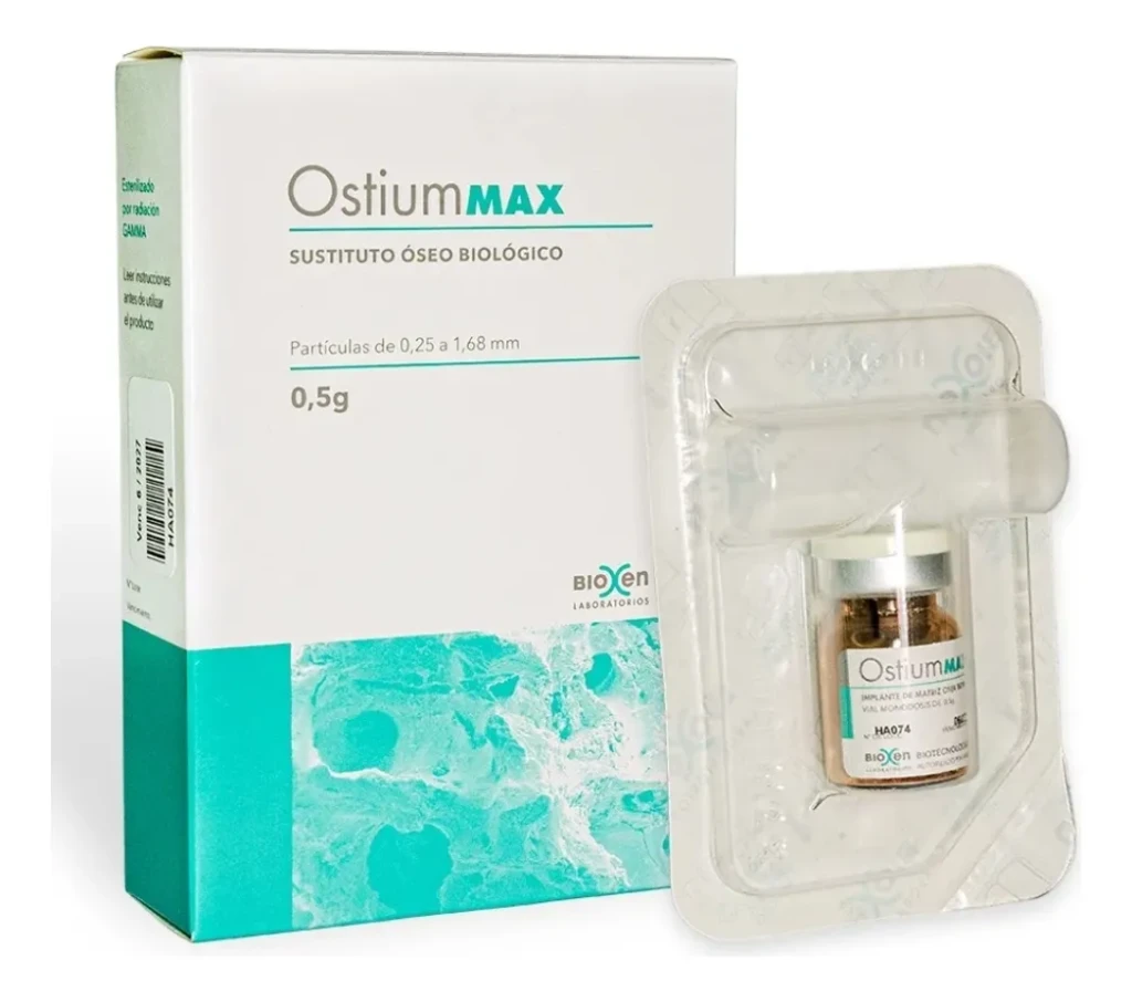 OstiumMAX es un mineral de hueso bovino. La estructura mineral osteoconductora altamente purificada se elabora a partir de hueso natural mediante un proceso de purificación de varias etapas que cumple estrictamente las normas de seguridad. Debido a su origen natural, OstiumMAX es comparable desde los puntos de vista químico y estructural al hueso humano mineralizado (apatita nanocristalina natural).