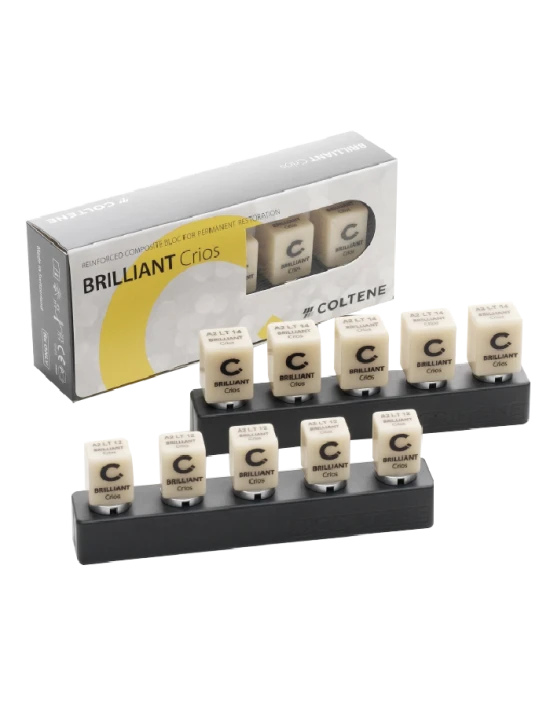 BRILLIANT Crios es un bloque de resina reforzado. El material combina todas las ventajas de un innovador sistema de resina híbrida submicrónica con un proceso de fabricación CAD/CAM para obtener restauraciones fiables, estéticas y rápidas sin un proceso de cocción aparte.